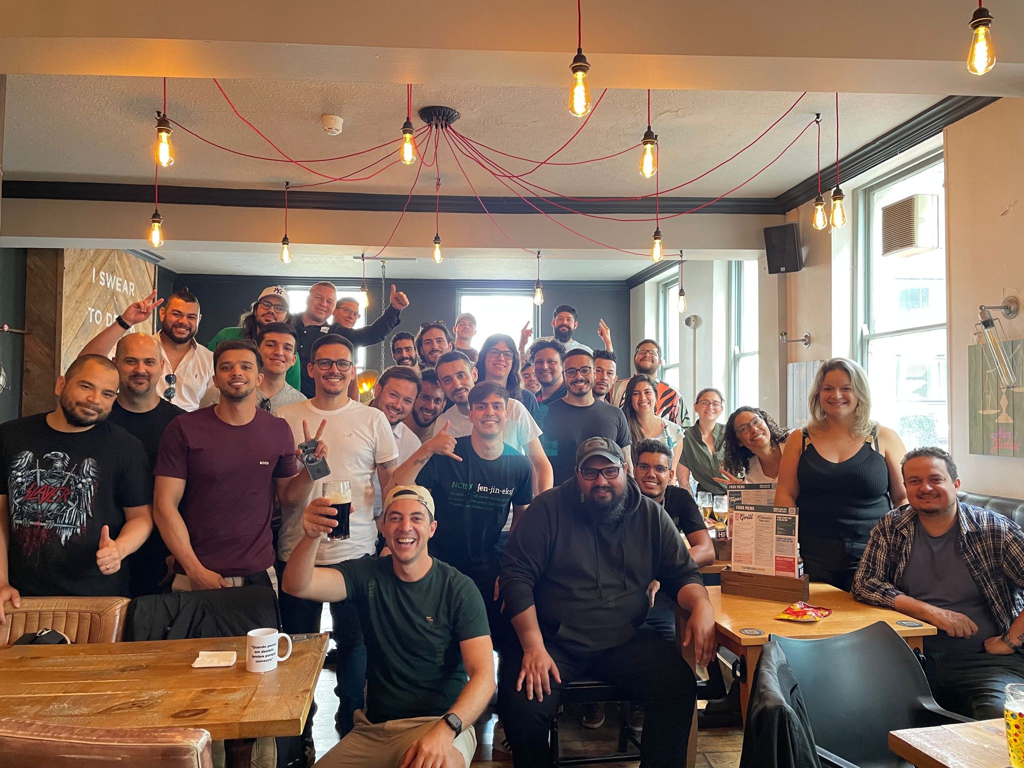 Em um encontro descontraído de profissionais da área de tecnologia em Londres, brasileiros compartilham suas experiências sobre trabalhar no Reino Unido. Com cerveja gelada e um clima de networking, discutem a demanda por desenvolvedores, o ecossistema de tecnologia, habilidades em demanda e o mercado de trabalho e remuneração.